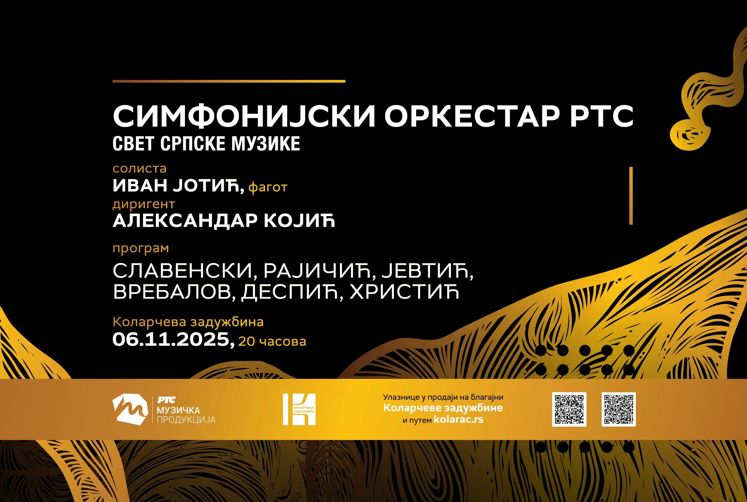 Simfonijski orkestar RTS, pod dirigentskom palicom Aleksandra Kojića, u četvrtak 6. novembra u 20h u Velikoj dvorani Kolarčeve zadužbine izvešće koncert pod nazivom Svet srpske muzike.