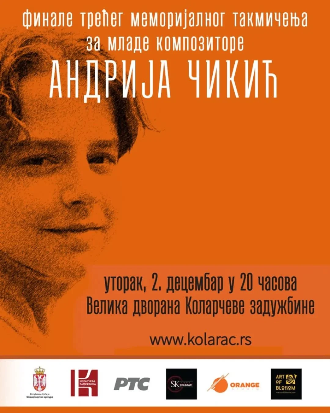 Finale trećeg Memorijalnog takmičenja za najbolje mlade kompozitore Andrija Čikić biće održano 2. decembra u Velikoj dvorani Kolarčeve zadužbine u Beogradu.