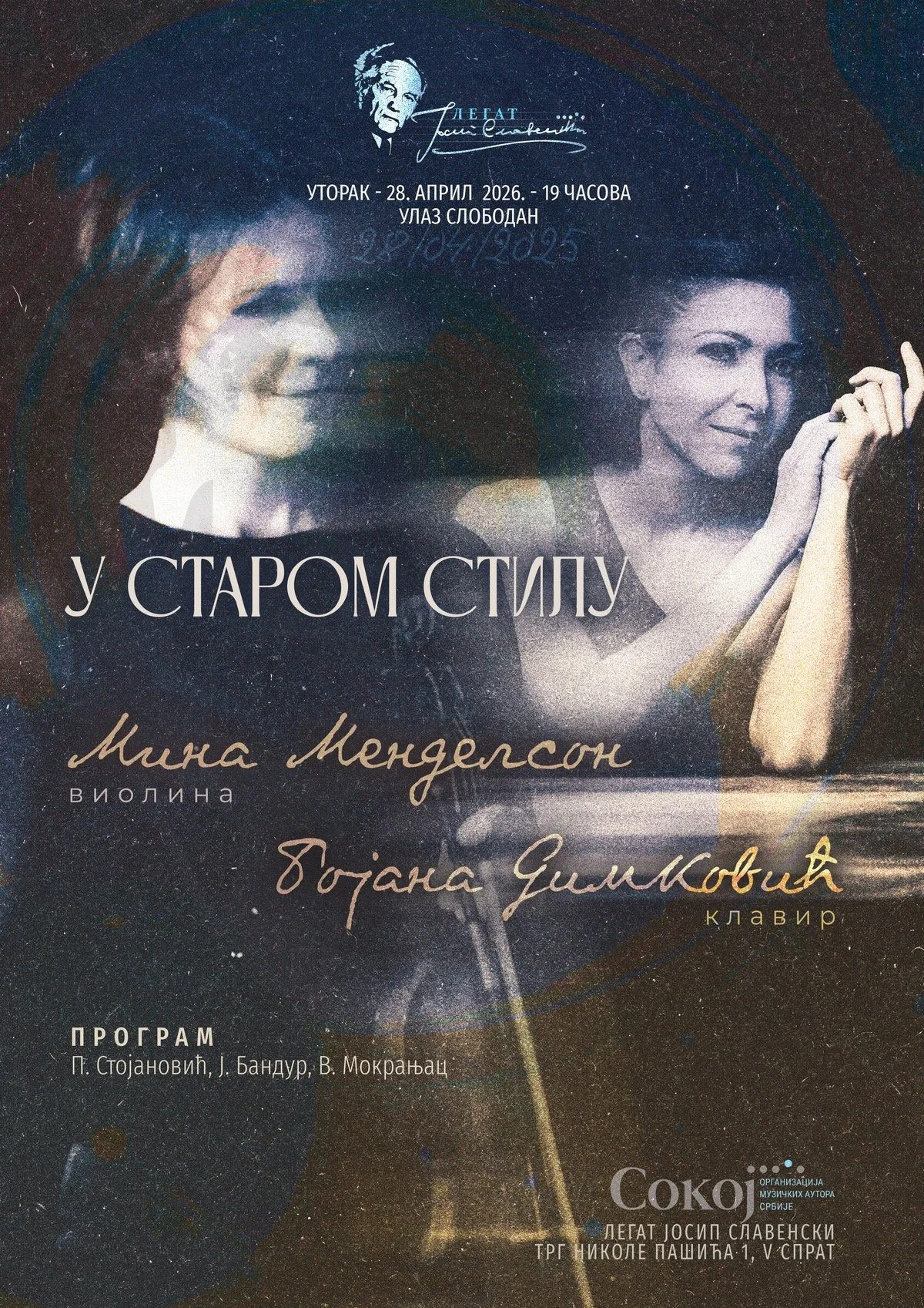 Koncert pod nazivom U starom stilu biće održan u utorak, 28. aprila sa početkom u 19 časova u Legatu Slavenski.