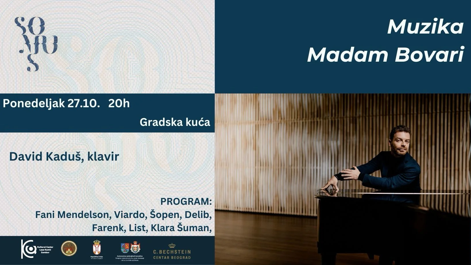 Jedan od najznačajnijih pijanista mlađe generacije, laureat takmičenja u Lidsu, David Kaduš, nastupiće u ponedeljak, 27. oktobra u Sali Gradske kuće. Koncert nosi naziv Muzika Madam Bovari. Dobitnik je najprestižnije nagrade za muziku u Francuskoj Victoires de la musique classique 2010. godine, Kaduš je do sada izdao devet kompakt diskova.