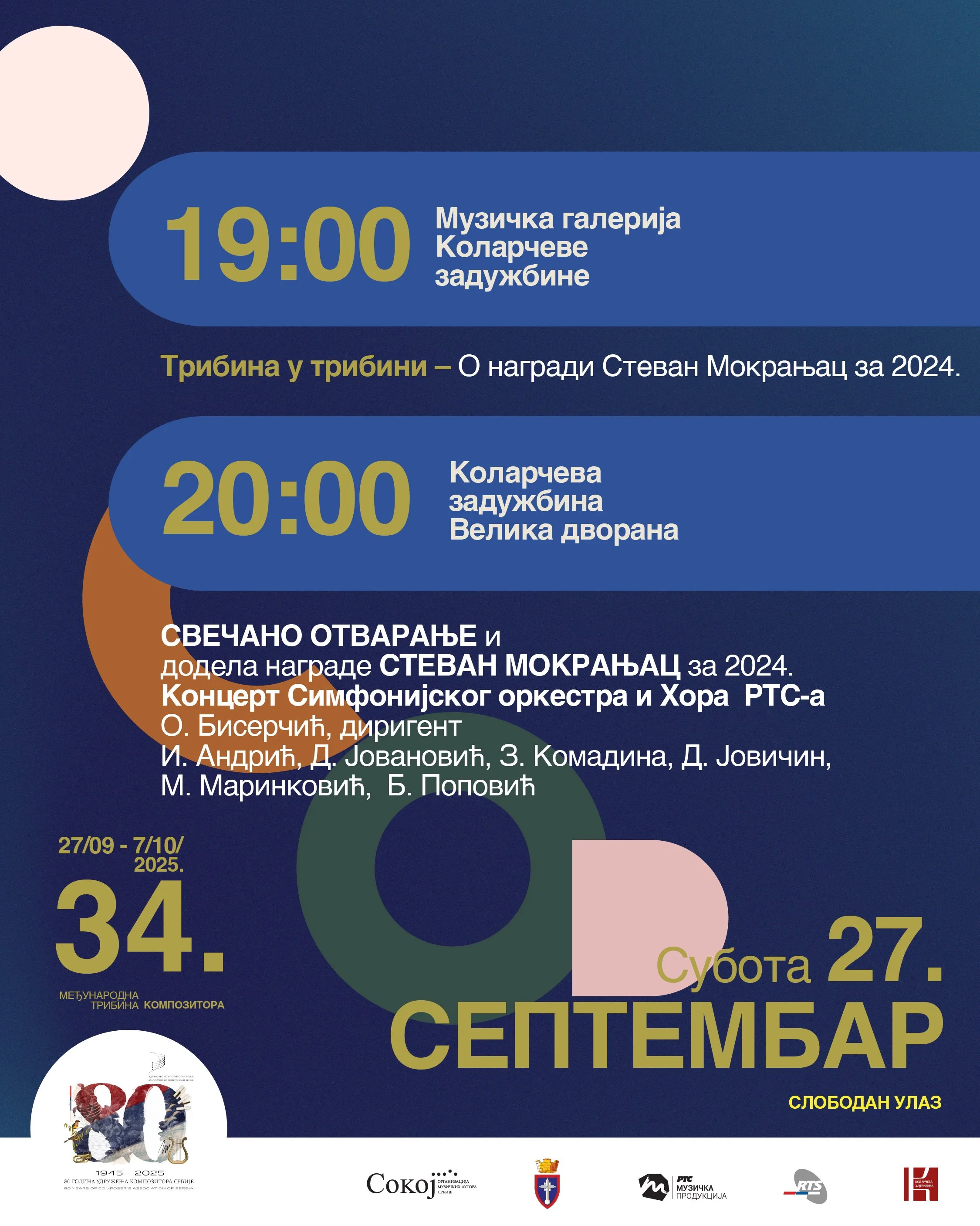 Prkosno – zbog činjenice da u godini kada Udruženje kompozitora Srbije slavi 80 godina postojanja, Ministarstvo kulture nije podržalo održavanje ovog festivala, kao ni prestižnu nagradu Stevan Mokranjac. Sokoj ostaje kao jedini stub oslonac ovom festivalu i srpskim kompozitorima.
